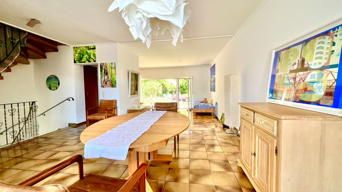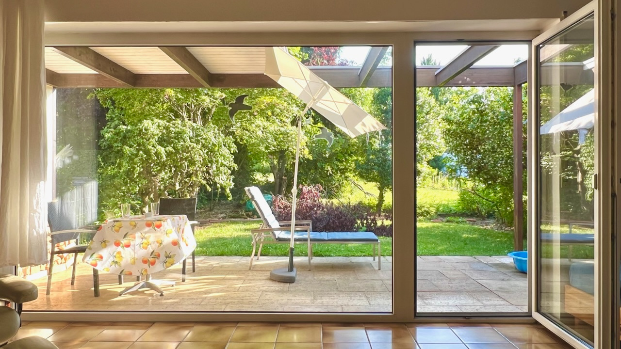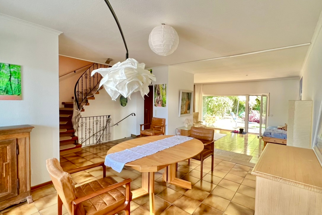 Der großzügige Wohn- und Essbereich bildet das Zentrum des Hauses: Große Fensterflächen mit Blick in den Garten lassen viel Tageslicht herein und schaffen ein freundliches Ambiente, während der gemütliche Grundriss zu erholsamen Stunden mit Familie und Freunden einlädt.